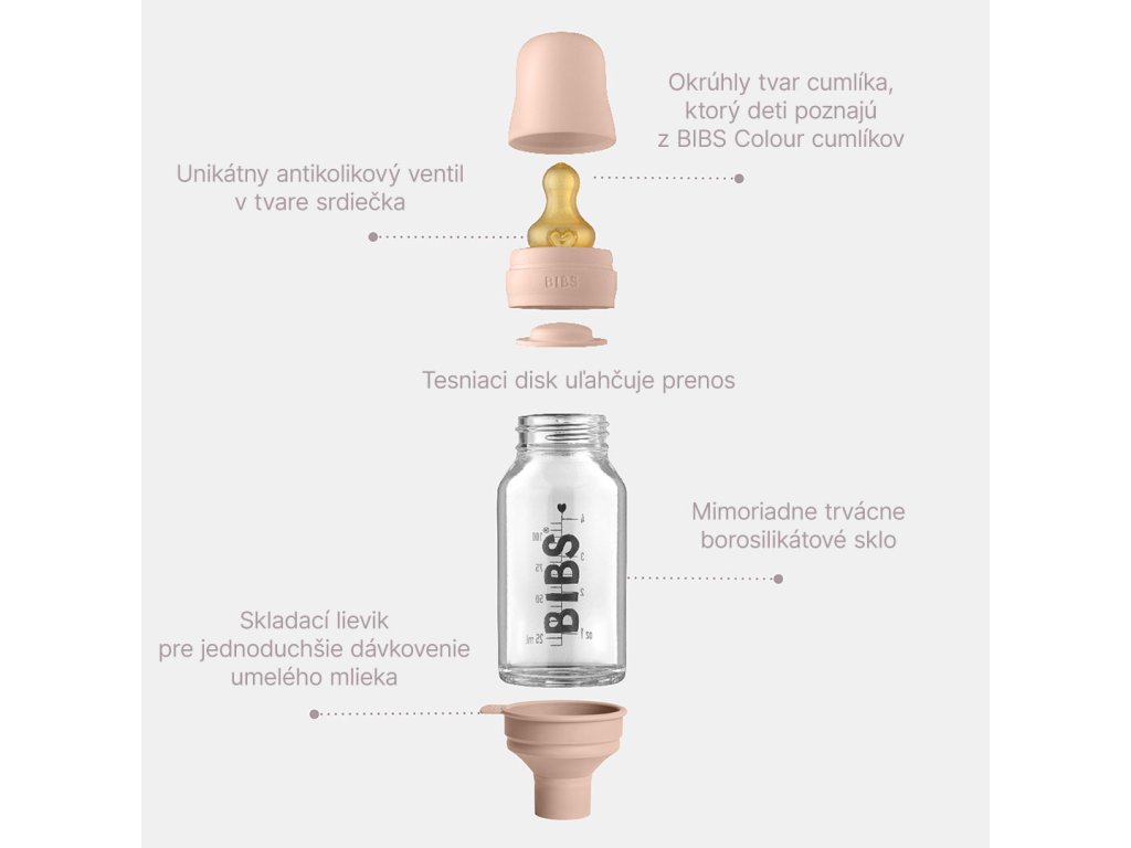 BIBS Baby Bottle sklenené fľaše sú zárukou, že bábätká prídu pri kŕmení do kontaktu len s kvalitným prémiovým a bezpečným materiálom. Sú vyrobené z prvotriedneho borosilikátového skla, ktoré do nápojov neuvoľňuje žiadne škodlivé látky či mikroplasty, je mimoriadne trvácne a extrémne odolné voči teplu. Okrem najkvalitnejších materiálov vynikajú BIBS dojčenské fľaše aj svojím nadčasovým retro dizajnom, v ktorom je dokonale prepracovaný každý detail. Súčasťou balenia sú praktické doplnky v obľúbených BIBS farbách.