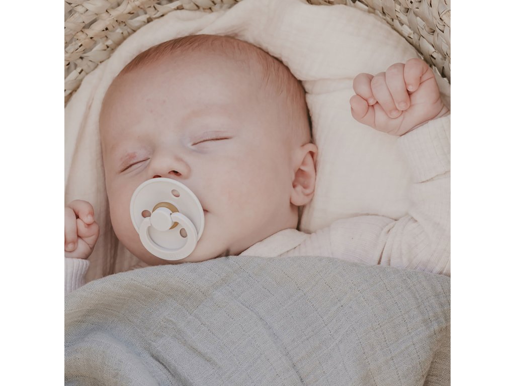 Ikonické cumlíky navrhnuté a vyrábané v Dánsku už od roku 1978. Okrúhly tvar zo 100% prírodného kaučuku sa ľahko stláča a formuje v ústach. Vďaka špeciálnemu klenutému tvaru štítu je minimalizovaný dotyk cumlíka s pokožkou. V balení 1ks.