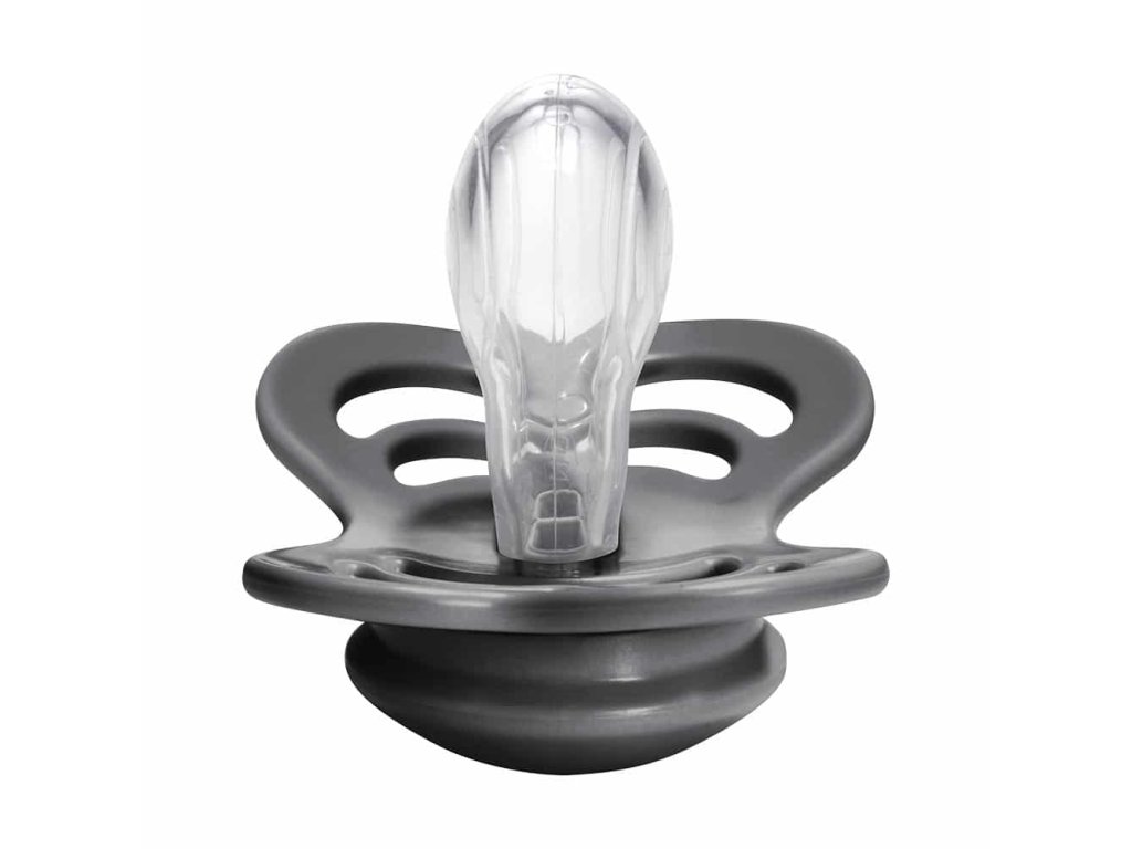 Symetricky tvarovaná sacia časť je vyrobená zo 100%-ného medicínskeho silikónu najvyššej kvality a vďaka jej zúženému tvaru v oblasti zhryzu je na zúbky a ďasná vyvíjaný minimálny tlak, čím je zachovaný ich prirodzený vývoj. Cumlík je navrhnutý tak, aby nedráždil citlivú pokožku bábätka.