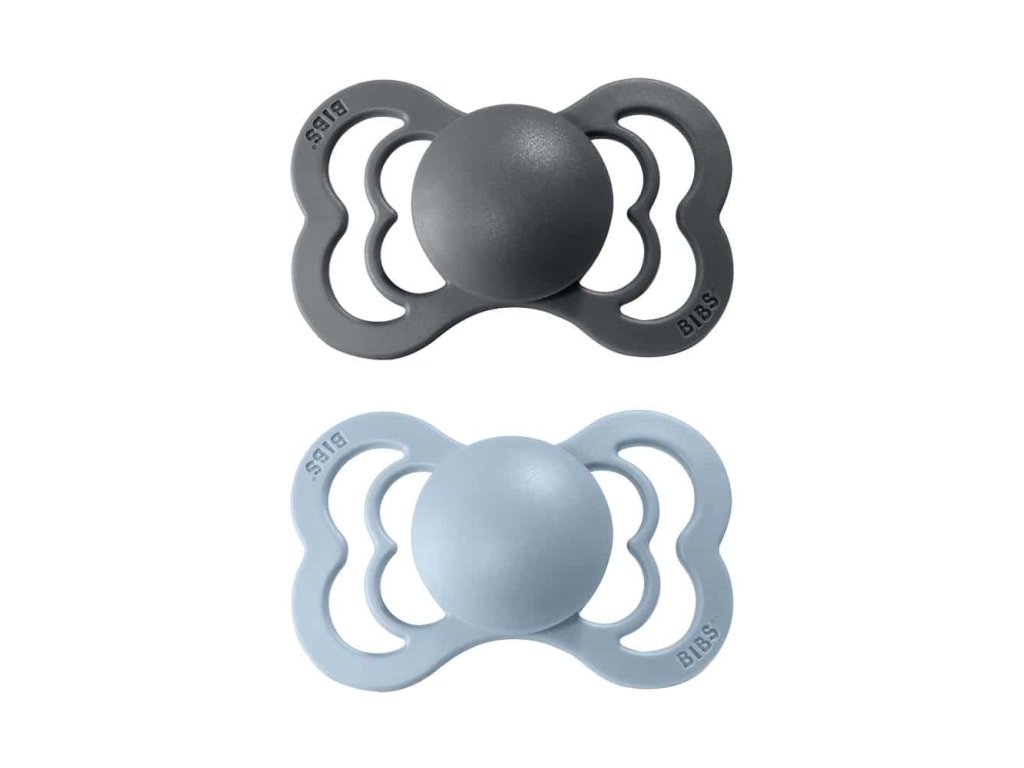 BIBS Supreme symetrické cumlíky zo silikónu 2ks - veľkosť 2 -iron-baby-blue
