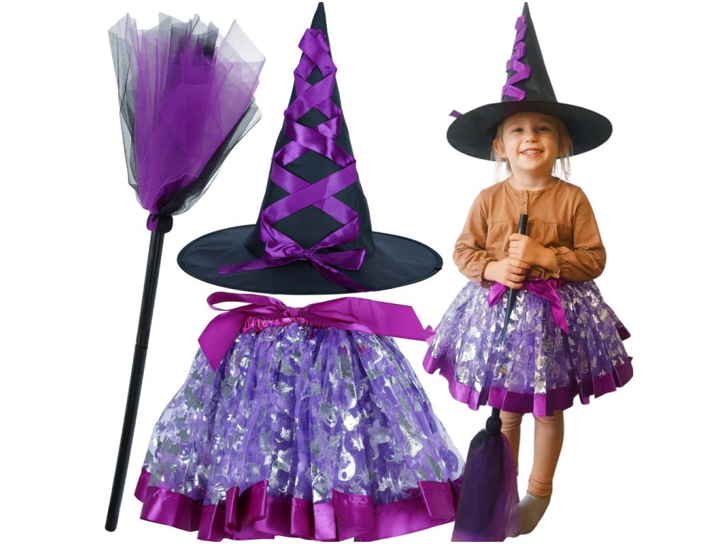 Kostým čarodejnice vo výraznej fialovej farbe je ideálny na karneval, oslavy či halloween pre deti od 3 rokov. Obsahuje pohodlnú sukničku so šírkou prispôsobiteľnou veľkosti dieťaťa, očarujúci čarodejnícky klobúk a metlu s dĺžkou 66 cm. Kvalitný materiál z polyesteru a bavlny zaručuje pohodlie aj pri dlhšom nosení. Tento kostým rozvíja detskú predstavivosť a je skvelou voľbou na každú čarovnú príležitosť!