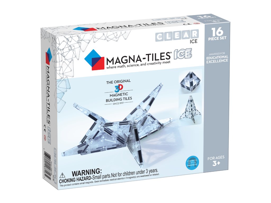 Magnetická stavebnica Magna-Tiles® Ice prináša deťom hodiny nápaditej a sústredenej zábavy. Táto sada obsahuje 16 čírych/transparentných magnetických dlaždíc a predstavuje tak skvelý doplnok ku klasickým magentickým stavebniciam Magna-Tiles®. Postavte si akvárium, prúdové lietadlo, vytvorte úžasný diamant alebo vytvorte arktickým zvieratkám Magna-Tiles® iglu a ľadový hrad. Deti sa môžu hrať samé alebo s kamarátmi, či rodičmi. Vymýšľajte stále nové a nové varianty a rozmanité stavby.