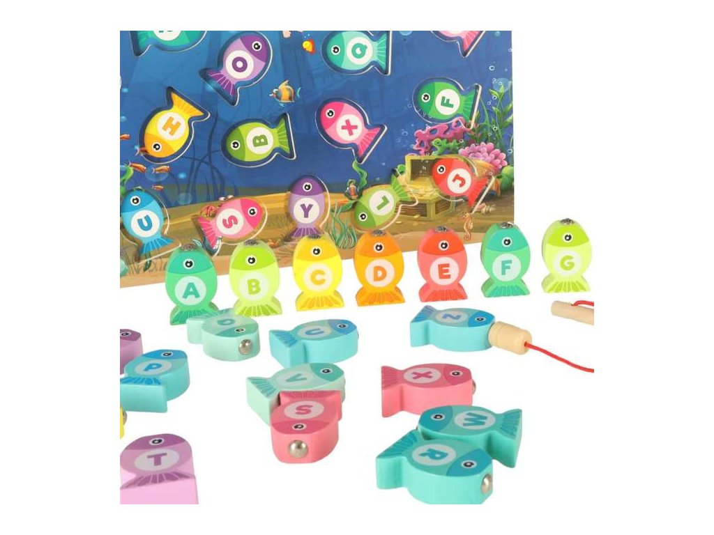 Zábavná drevená Montessori hra na rybolov rozvíja jemnú motoriku, sústredenie aj logické myslenie detí od 3 rokov. Magnetické rybičky sú farebné, označené číslami a písmenami, vďaka čomu podporujú hravé učenie sa počítania, poznávanie písmen a farieb. Ideálna voľba pre spoločnú zábavu aj samostatné hranie a rozvoj manuálnych zručností. Kvalitné prevedenie z dreva zaručuje dlhú životnosť a bezpečnosť pri hre.